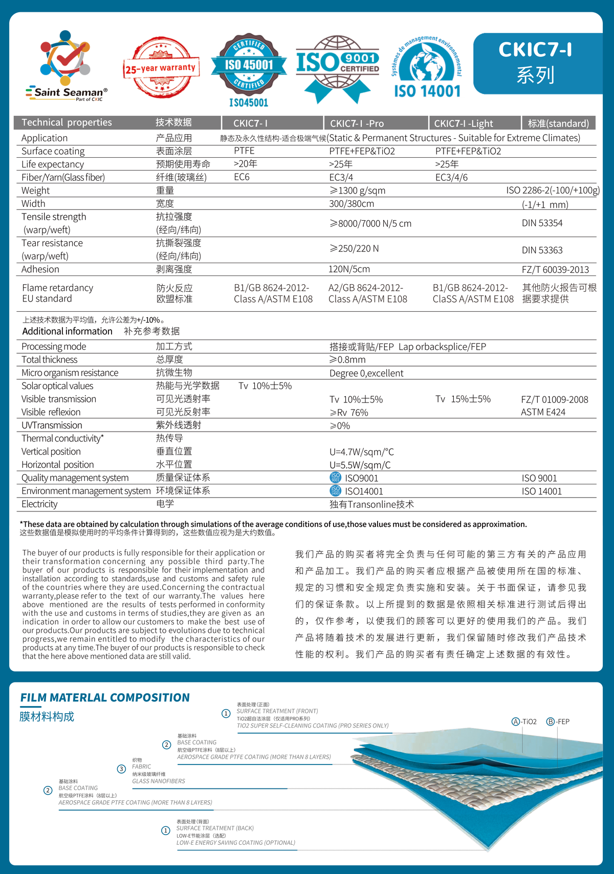 PTFE膜材具有极高的耐久性,能够抵抗紫外线、氧化和化学物质的侵蚀,使用寿命可达25年以上。PTFE膜材相较于传统建筑材料(如混凝土和钢材)更轻,减少了建筑结构的负担。PTFE 膜材可以传递自然光,能够创造明亮、舒适的室内环境,降低能源消耗。PTFE 膜材料可以制成多种形状和结构,适用于各种建筑风格和设计需求。···